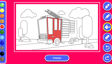 Use the touchscreen to colour in the fire engine and even the rescue boat!